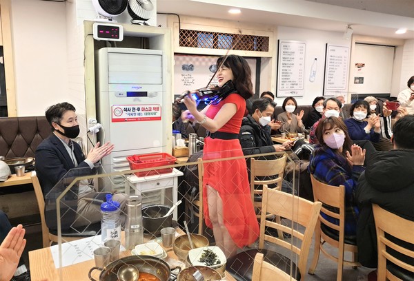 지난 1일 패스브레이킹 싱어즈(단장 손진기)는 코로나19로 고통을 받는 소상공인을 돕기 위해 ‘김치찌개 콘서트’를 열었다. ‘대독장’ 삼성점에서 열린 이번 공연은 소상공인 살리기 프로젝트로 자영업자 업장에서 음식과 함께 클래식을 즐긴다는 내용이다.