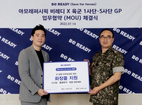 아모레퍼시픽 Z세대 남성 브랜드 비레디(BeREADY)가 육군 GP 병사들에게 4000만원 상당의 제품을 기부한다.