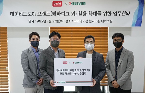 27일 진행된 업무 협약식은 박정후 세븐일레븐 상품부문장, 신상훈 데이비드토이 대표 등 양사 주요 관계자들이 참석한 가운데 세븐일레븐 본사(서울 중구 수표동 소재)에서 진행됐다.