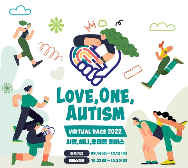 ‘사랑, 하나, 오티즘 레이스’는 장소 및 시간에 구애받지 않는 가상 마라톤 대회로 대회 홈페이지를 통해 10월 12일까지 신청하면 된다.