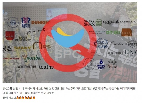 SPC 불매운동 확산 조짐...배경엔 민노총이 올린 한장의 사진과 글