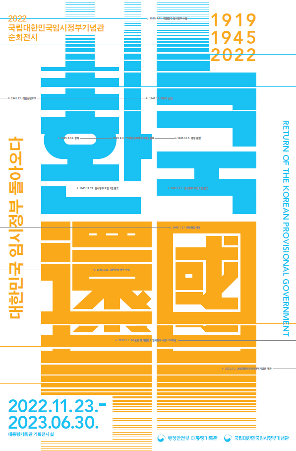 행정안전부 대통령기록관은 국립대한민국임시정부기념관과 공동으로 대한민국 임시정부 환국 기념일인 11월23일에 맞춰 개막 행사를 개최한다.