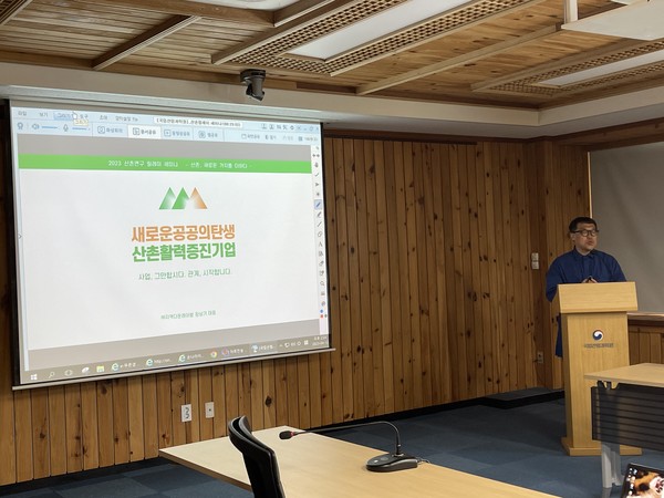 지난 12일 ㈜지역다운레이블의 장상기 대표를 초청해 열린 제1차 세미나에서는 이 시대 산촌다움은 무엇이며, 산촌이 가지고 있는 매력과 가치를 확산시키기 위해서는 우리가 무엇을 준비해야 하는지 토론하는 시간을 가졌다.