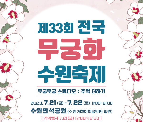 ‘제33회 전국 무궁화 수원축제’(‘무궁화 축제’)가 오는 21일부터 22일까지 수원 만석공원에서 개최된다.