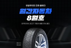 특히, 이번 행사의 경우 한국타이어 본사가 최초 참여해 상품 경쟁력을 키웠다. 장마철 빗길 운행에도 최적화된 '키너지 4S2' 20종을 최대 45% 특가에 판매한다. 대표 제품으로 '215/55R17 키너지 4S2', '245/40R19 키너지 4S2' 등이 있다.