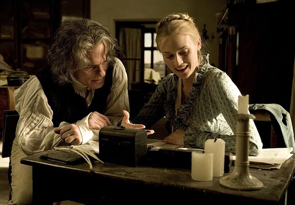 베토벤은 처음 만난 안나 홀츠에게 여자가 어떻게 이런 일을 할 수 있냐며 호통을 치는데요. 안나 홀츠는 당당하게 자신이 필사한 베토벤의 악보를 본 후 자신을 채용할지 말 지를 정하라고 맞받아치죠. 괴팍한 성미를 부리던 베토벤은 안나 홀츠의 악보를 보자마자 조용히 그를 즉시 채용하고요. 이렇게 영화가 시작됩니다. 참 실제 당시에는 복사기도 없었고, 인쇄술도 크게 발전하던 시기가 아니었는데요. 때문에 작곡가들이 악보에 쓴 작품을 다시 새로운 악보에 깔끔하게 옮겨 적는 카피스트들이 필요했어요. 오늘날까지 전해지는 그 시대의 악보들 중에서 작곡가가 특별히 필사한 한정판 악보들도 있는데요. 가령 베토벤이 직접 필사해 판매했던 악보인 셈이죠. 하여튼 안나 홀츠는 이렇게 베토벤의 집에서 그의 악보를 그리며 <교향곡 9번> 초연까지 큰 도움을 줍니다.