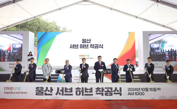 쿠팡은 동남권에서 '로켓배송' 권역 확대를 위한 '쿠팡 울산 서브허브' 착공식을 진행했다고 15일 밝혔다.
