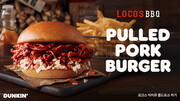 던킨이 BBQ 전문점 '로코스비비큐(LOCOS BBQ)'와 협업한 신제품 '로코스 비비큐 풀드포크 버거'를 선보인다.