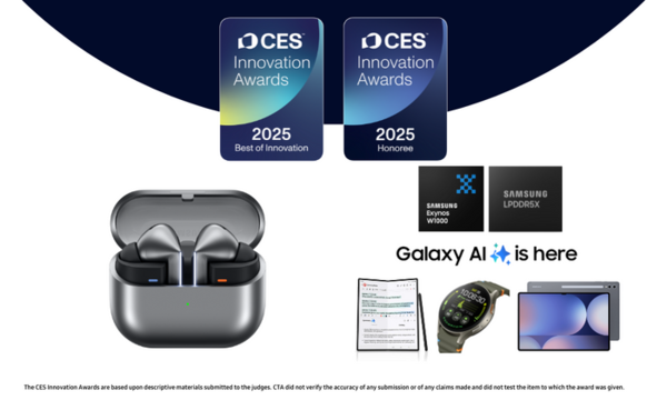 모바일 부문에서는 프리미엄 사운드와 적응형 소음 제어 최적화가 적용된 '갤럭시 버즈3 프로'가 최고 혁신상을 수상했고 '갤럭시 AI', '갤럭시 Z 폴드6', '갤럭시 탭 S10' 시리즈, '갤럭시 워치7'로 4개의 혁신상을 추가했다.