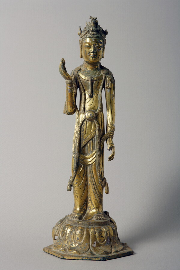 백제 조각의 대표작인 부여 규암리 출토 금동관음보살상과 국립대구박물관 소장 신라의 구미 선산읍 출토 금동관음보살상이 한자리에서 만나고 있다.