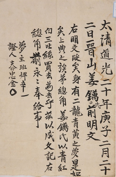 이때 작성된 매매문서에는 '몽주(夢主) 반비(班婢) 신(辛)'과 증인으로 참석한 그녀의 남편 박충금의 날인이 있다.