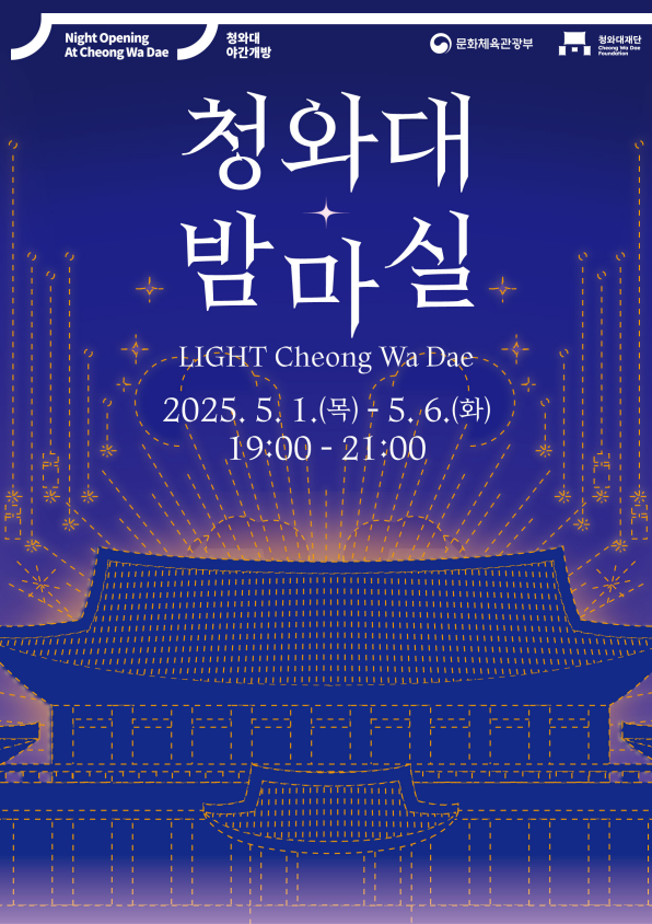 '청와대 밤마실' 기간 청와대 본관은 한국 전통 문양을 활용한 조명으로 수놓는 '청와단청'으로 변신한다. 또 움직임에 따라 조명이 다채롭게 반응하는 '빛의 길'을 통해 색다른 재미와 흥미를 전할 예정이다. 숲속을 거니는 듯한 몰입감을 주는 '빛의 숲', 고즈넉한 관저 정원을 배경으로 음악과 조명이 어우러지는 '빛의 정원' 등 청와대 곳곳이 빛의 예술로 채워질 프로그램도 마련됐다. 매일 오후 7시부터 9시까지 2시간 동안 진행된다.